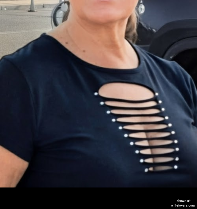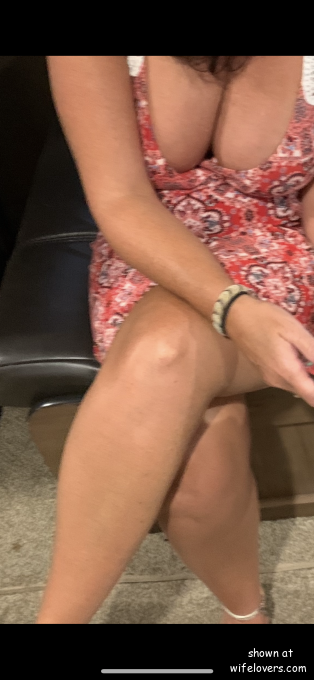 Sooo SEXY! My wife turning heads with her cleavage.